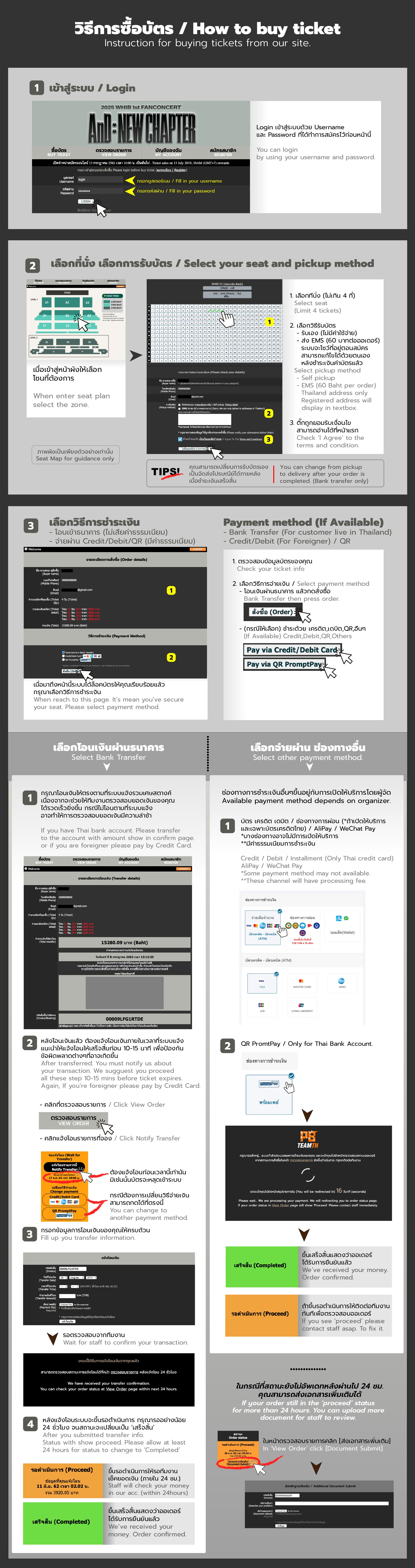 - Before purchased ticket, please recheck no. of tickets carefully because you cannot change after submitted. Payment must be done completely per one order and not allowed to pay specific seating(s). If payment is incomplete or partially amount, system will consider as cancellation. If you want to buy ticket, you can do again with remaining seats next round by selecting ticket same as transferred amount.